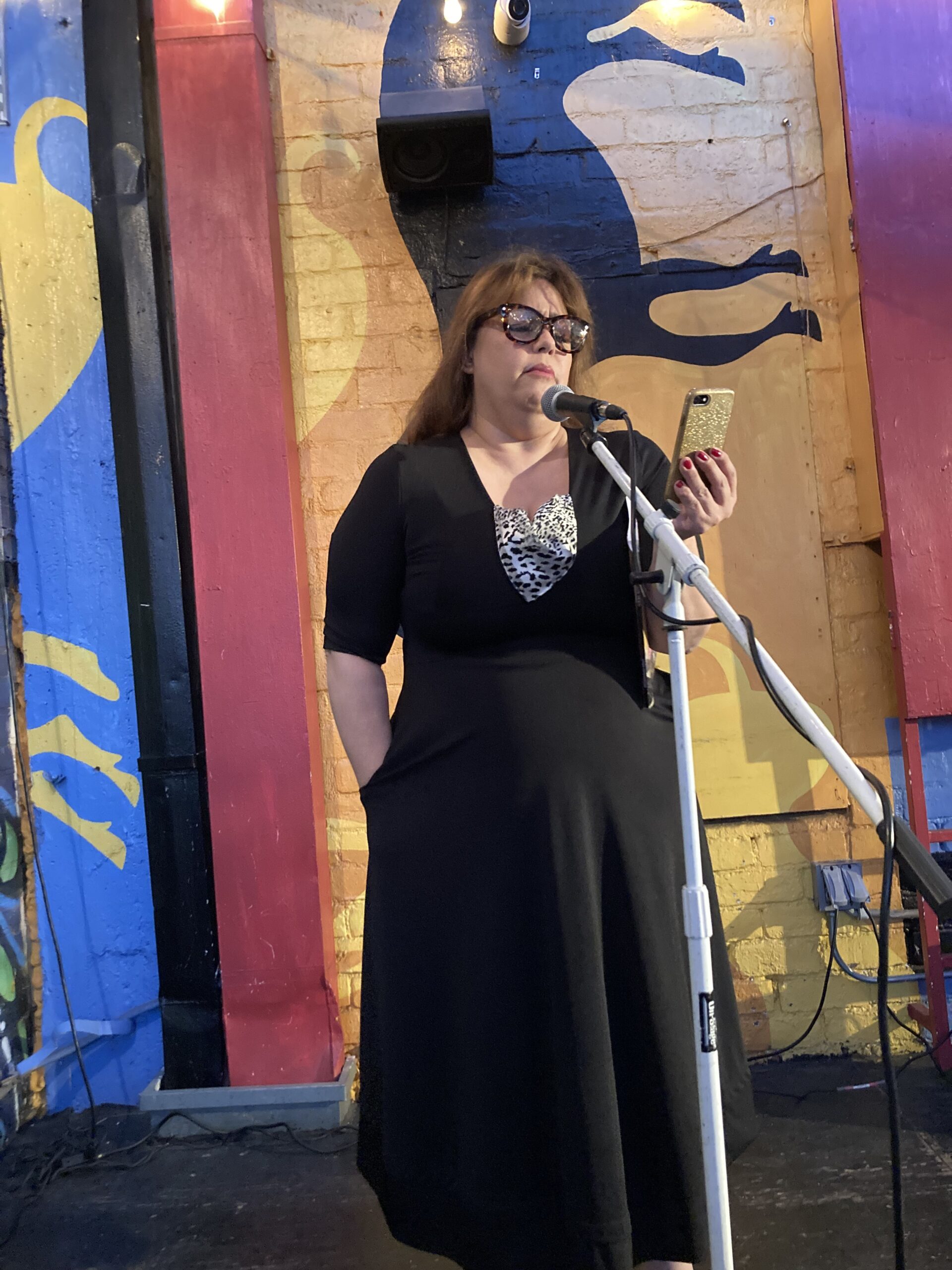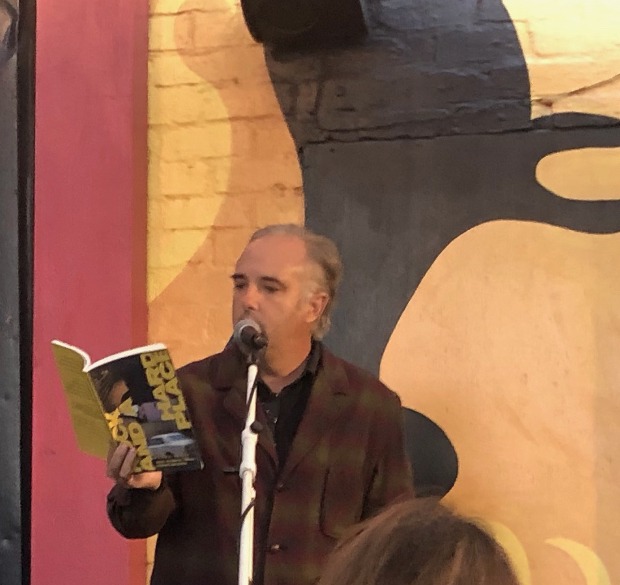 Where are my thoughts? First, was Gabriel Hart. He nicknamed himself “sacrificial lamb” to start the show. Hart read a very exciting story about cocaine, Mexican gangster, and white people called “Crossing Alvarado.” It is featured story in Rock and a Hard Place, issue 6. When I told him I enjoyed the story, he started to say it was proposed Best American Mystery and Suspense, but then quieted himself, shaking his head. He said he felt sad tonight because his friend Lizzie was on program to participate, but she is now deceased.