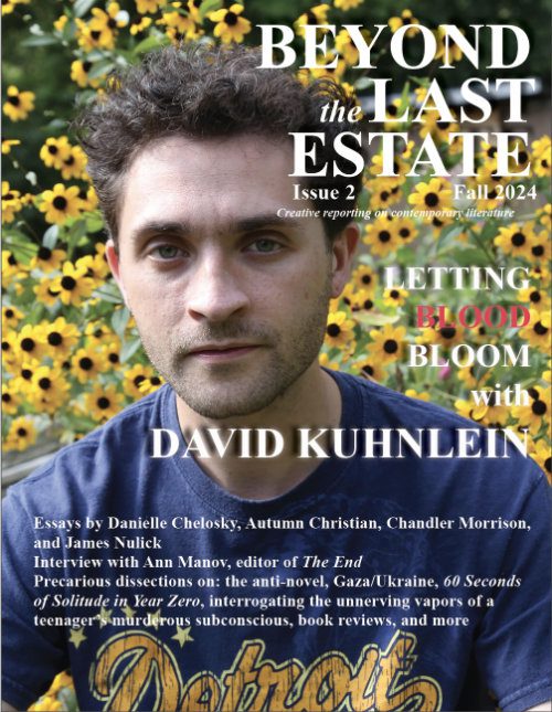 Cover story on David Kuhnlein; interview with Ann Manov, editor of The End magazine, essays by Danielle Chelosky, Autumn Christian, Chandler Morrison, James Nulick; Reversing the Nightmare: On Speed, Murder, and the long road writing On High at Red Tide by Gabriel Hart. Reviews of A Club For Gentlemen, All The Pretty Horses, American Cats Are In a Big Country, Blue of Noon, Butcher, The Calendar Factory, Creation: On Art and Unbecoming, Deliver Me, Dhalgren, Earth Angel, Esmerelda With An E, Flunker, The Gates of Janus, God Is Wearing Black, Letters to the Purple Satin Killer, Myth Lab, Plastic Soul, Pregaming Grief, Thumbsucker, Violent Faculties, Vivienne, Where the Breastplate Meets the Blade, and more.